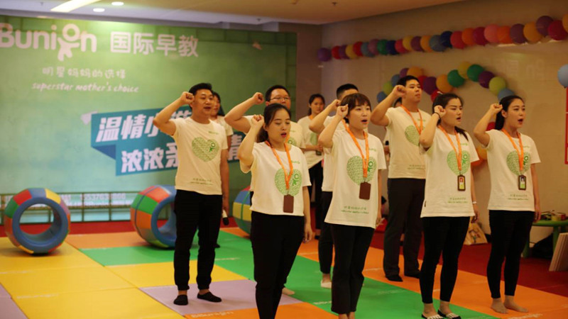 6月18日,在父亲节这个特殊的节日里,BBunion国际早教信阳中心在恒大商场四楼,举办宝宝有你,“爸”气十足大型亲子活动。首先,是BBunion国际早教信阳中心的团队展示。我们的成员进行了宣誓:我宣誓我将忠诚于早教事业,用爱与责任转播专业早教,陪伴孩子健康、快乐、成长,培养具备20年后社会需求的强竞争力人才,做最具品质的早教人。